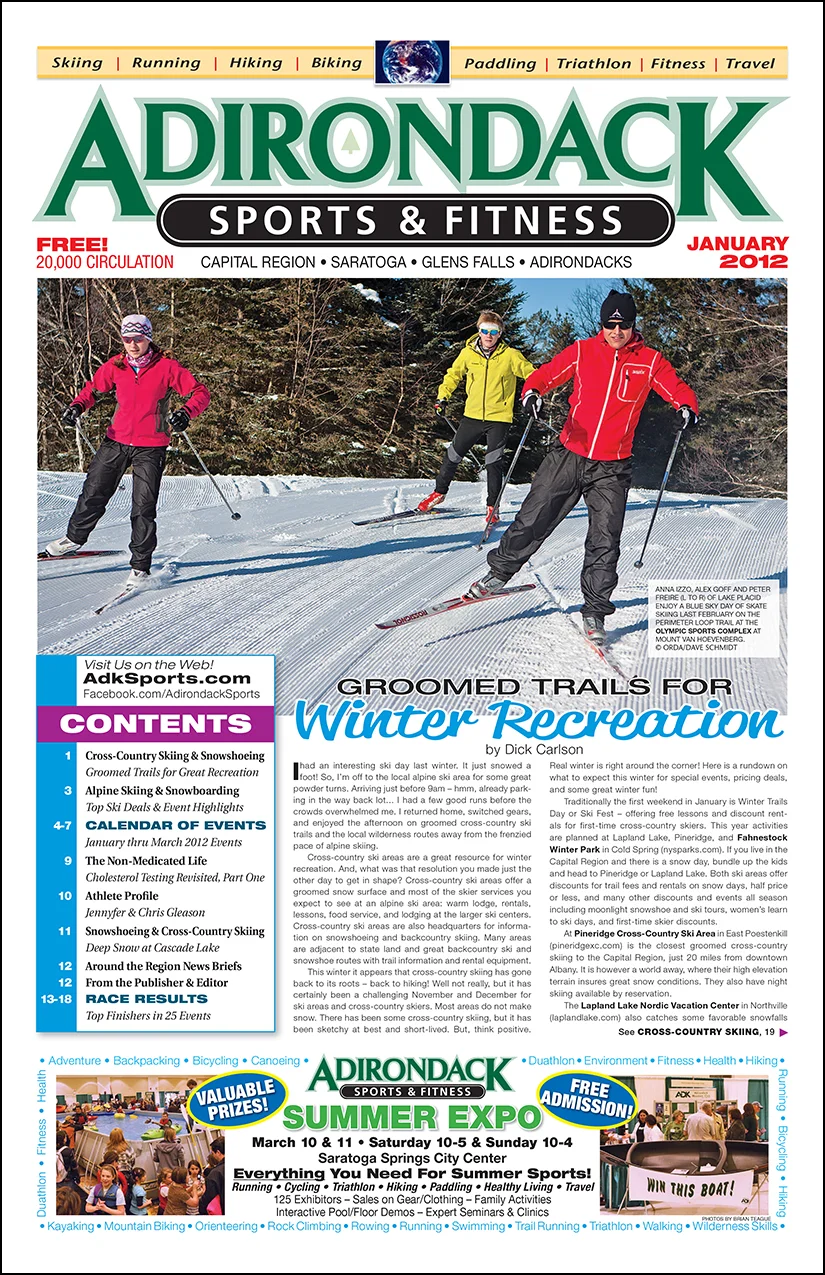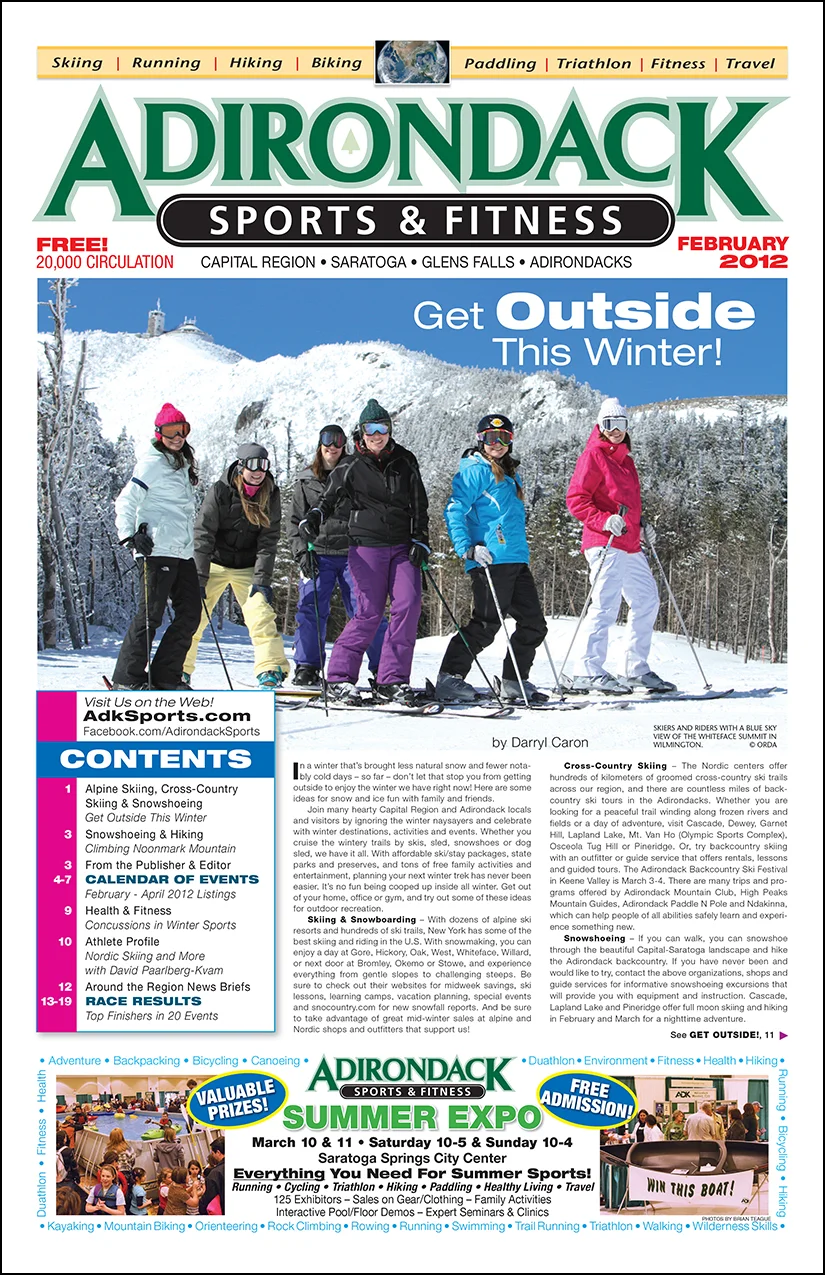 Adirondack Sports & Fitness is an outdoor recreation and fitness magazine covering the Adirondack Park and greater Capital-Saratoga region of New York State. We are the authoritative source for information regarding individual, aerobic, life-long sports and fitness in the area. The magazine is published 12-times per year at the beginning of each month.