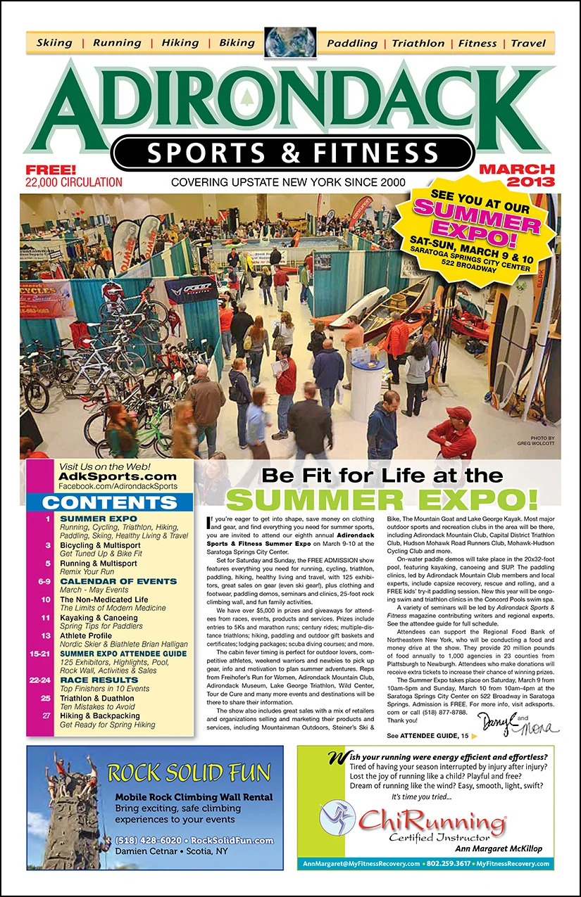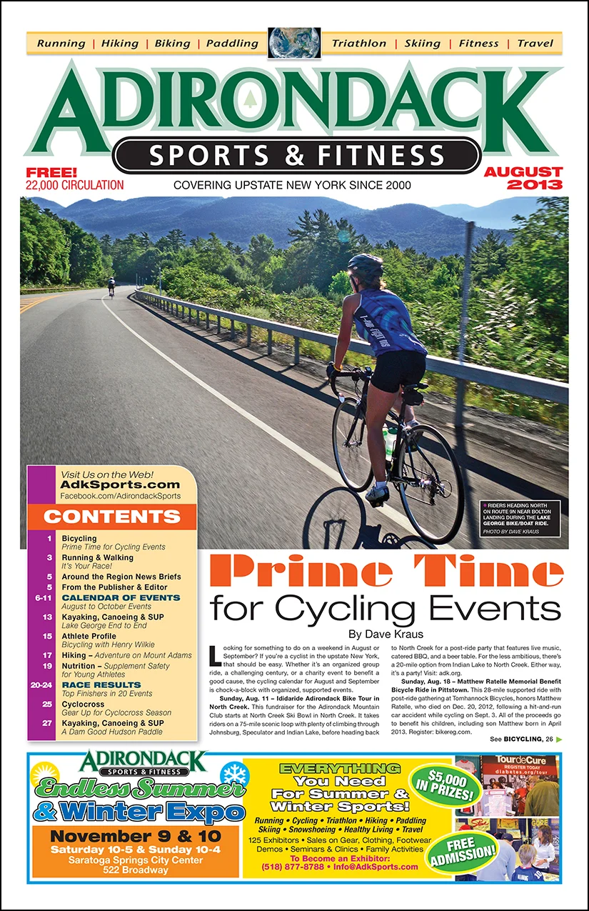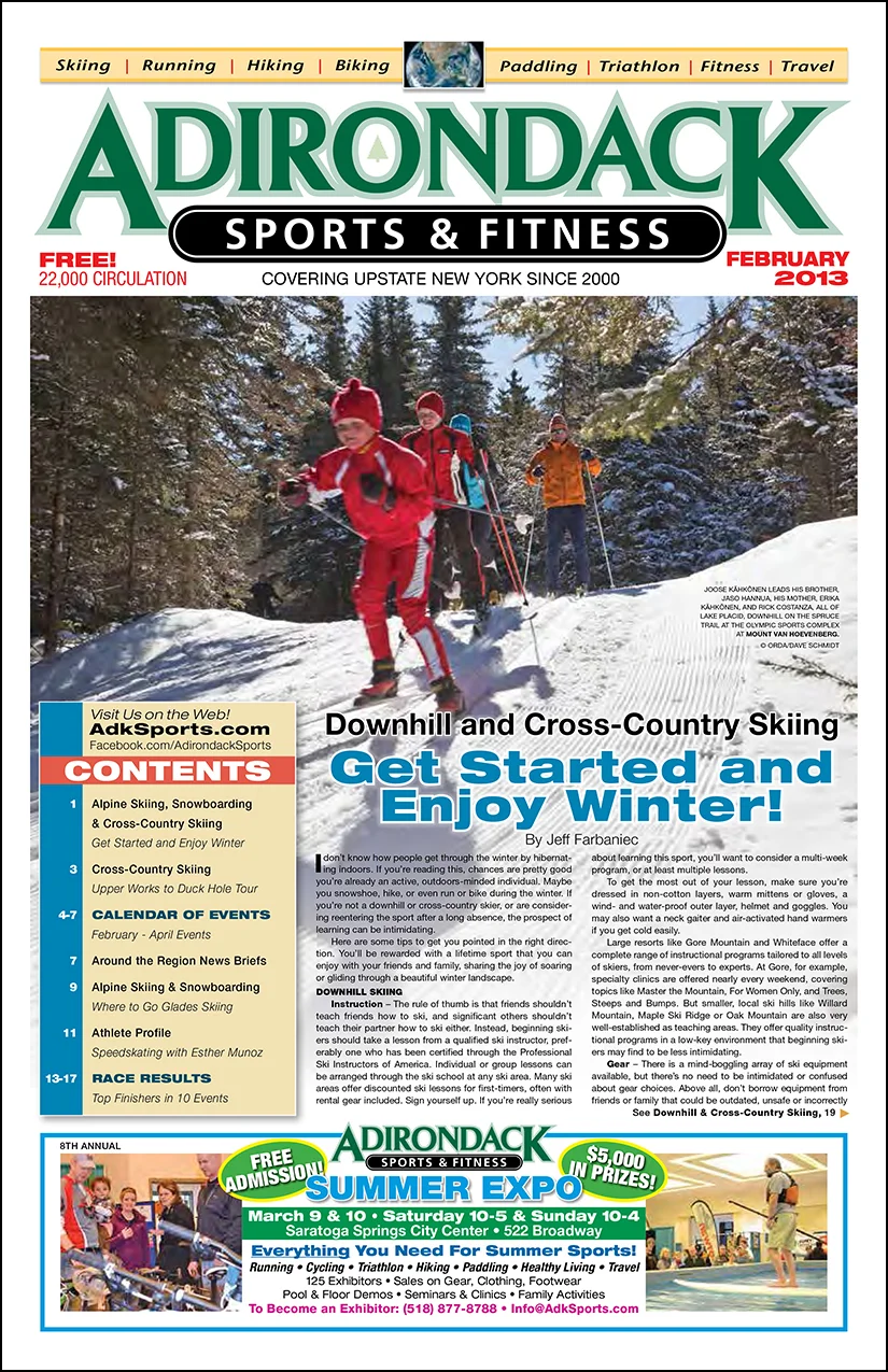 Adirondack Sports & Fitness is an outdoor recreation and fitness magazine covering the Adirondack Park and greater Capital-Saratoga region of New York State. We are the authoritative source for information regarding individual, aerobic, life-long sports and fitness in the area. The magazine is published 12-times per year at the beginning of each month.