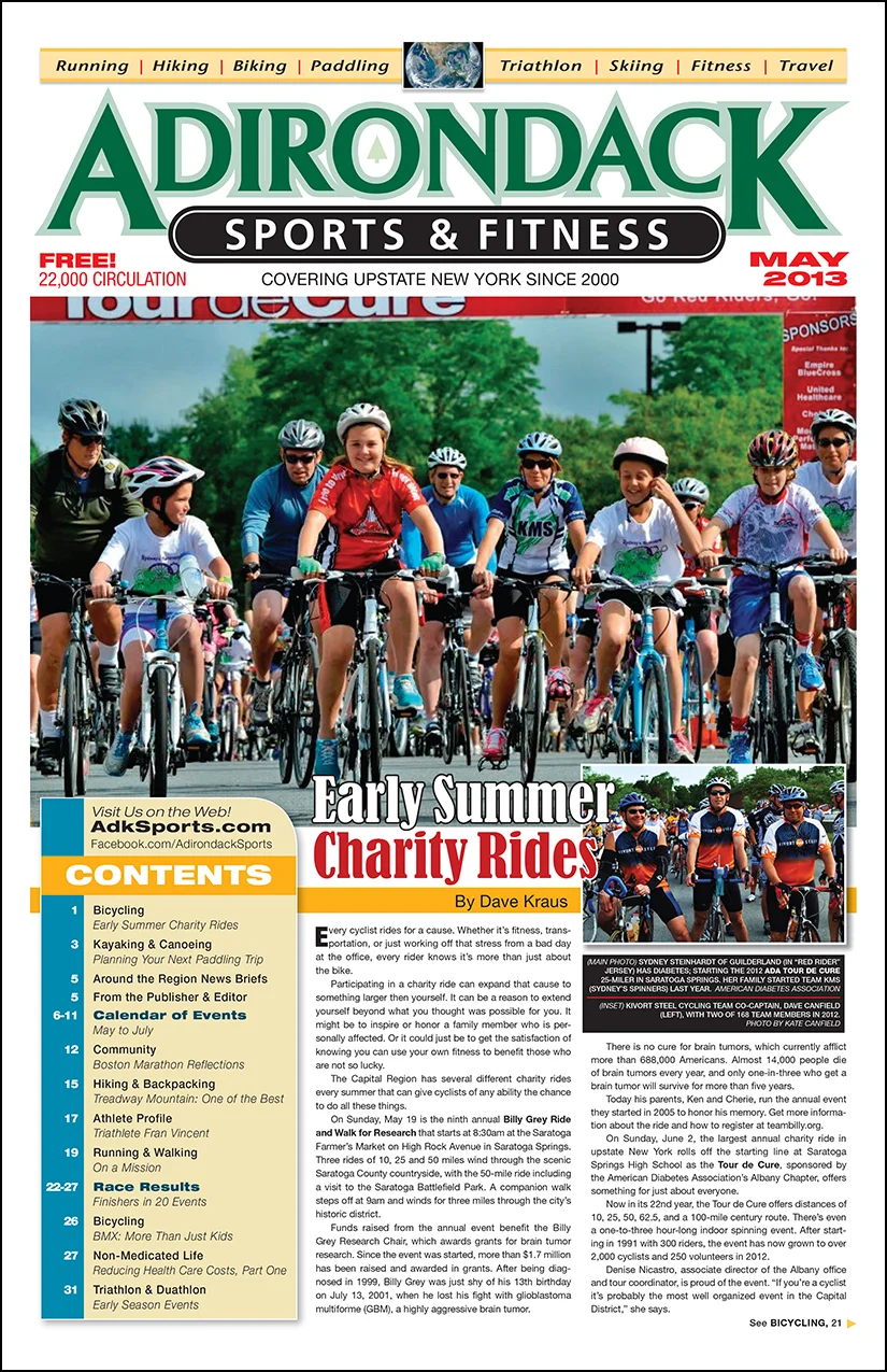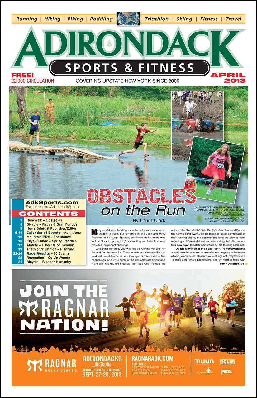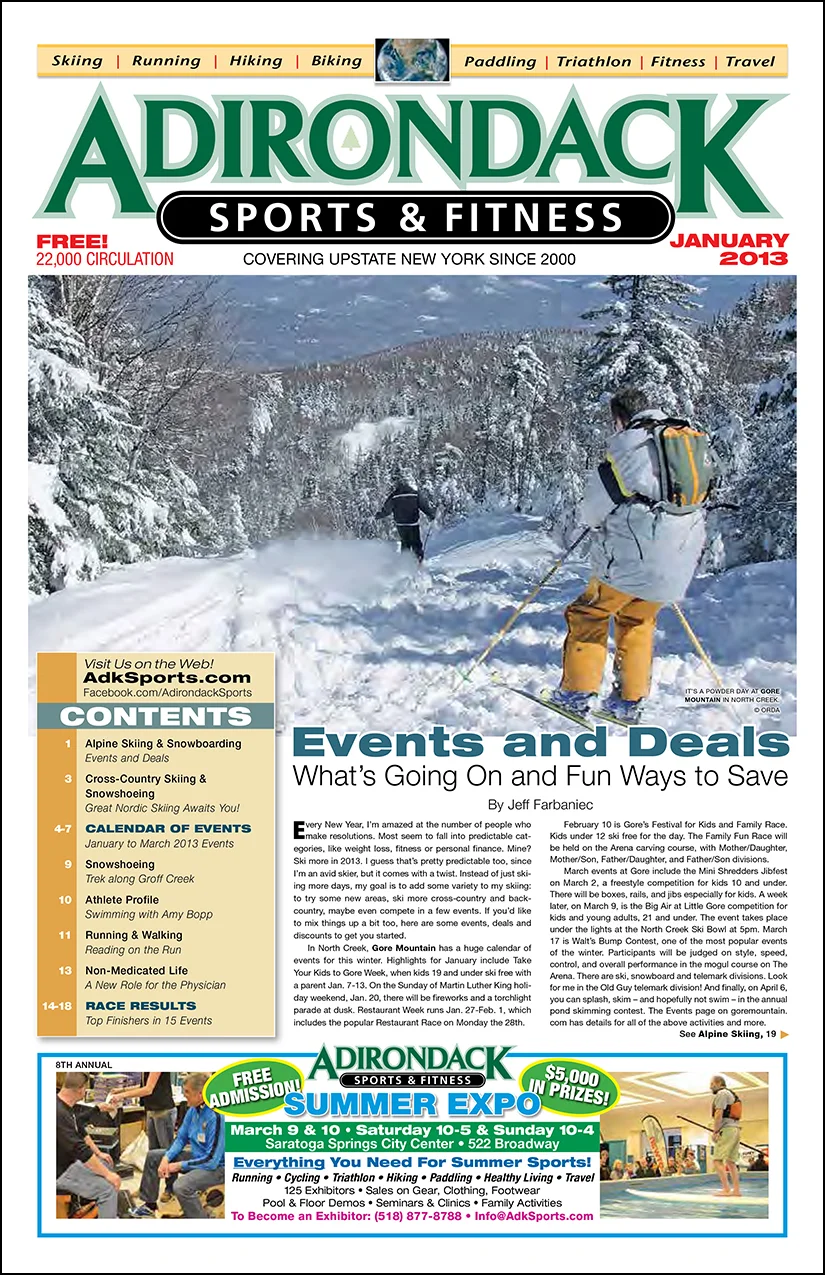 Adirondack Sports & Fitness is an outdoor recreation and fitness magazine covering the Adirondack Park and greater Capital-Saratoga region of New York State. We are the authoritative source for information regarding individual, aerobic, life-long sports and fitness in the area. The magazine is published 12-times per year at the beginning of each month.
