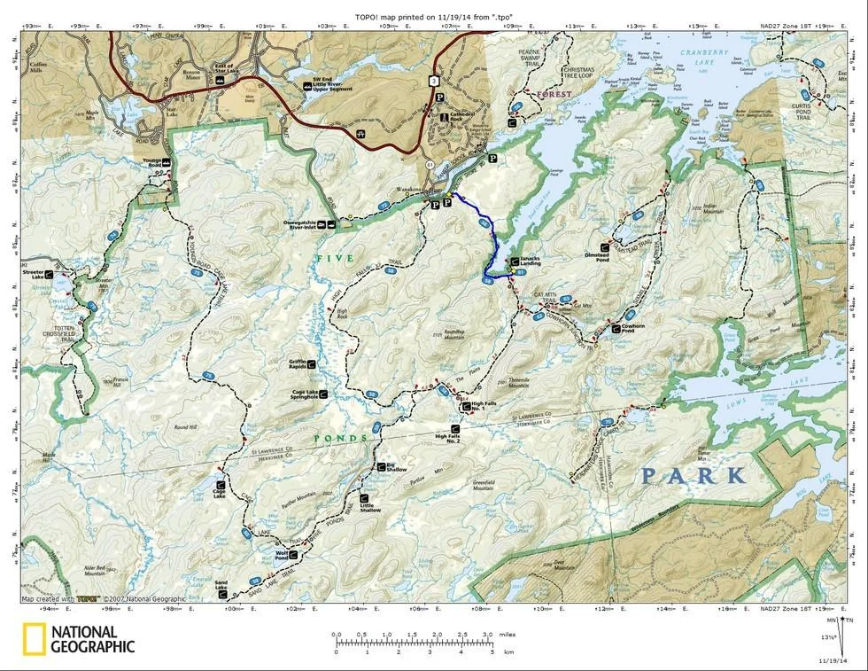 Today, the High Falls Loop is a key part of the Cranberry Lake 50, a long-distance backpacking trail that circumnavigates Cranberry Lake. For those who are not prepared to devote the better part of a week to a hike, the High Falls Loop is a very good alternative.