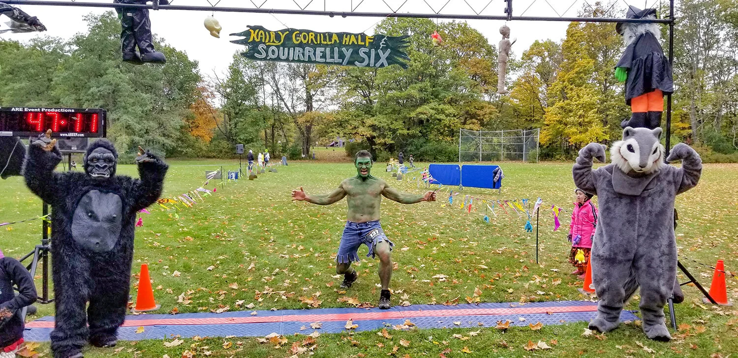 For a longer distance and trickier terrain, tackle Albany Running Exchange’s Hairy Gorilla Half Marathon & Squirrelly Six Mile at Thacher State Park on Sunday, Oct 27. The race is a roaming costume parade with participants sporting silly or scary costumes. Trails are festooned with seasonal decorations and bananas to bribe hungry gorillas. You might even spot a grave with your name on it! Each year I am hopeful, but never successful… Both races begin at the same time and journey along sections of the Long Path Trail. At the split, the half marathoners are treated to selfie-worthy scenic mountain/valley views along the Helderberg Escarpment. After dodging gorillas and graves, you will arrive at the pavilion for the huge potluck feasts for which ARE is famous, and, if you are lucky, an age-group cookie medal. Family members can have fun hiking and riding the zipline while they are waiting for you. (hairygorillahalf.com)