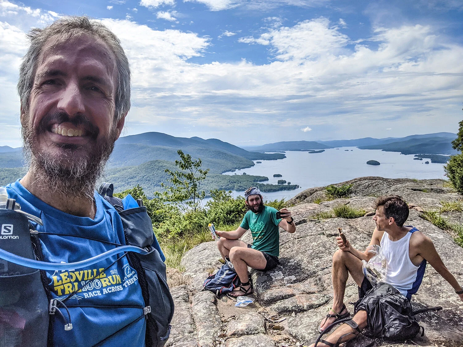After climbing what felt like countless peaks, including the lean-to at Fifth Peak and Five-Mile Mountain, Tim’s stomach issues hadn’t subsided and the lack of fueling caught up with him so he wasn’t going to be able to continue. We arranged contingency plans (Naomi to the rescue) and Jake and Bill continued on, visiting the next two peaks, then hammering down the Tongue trail, super thankful to see the trail register come into view, signifying the end of this long and challenging section.