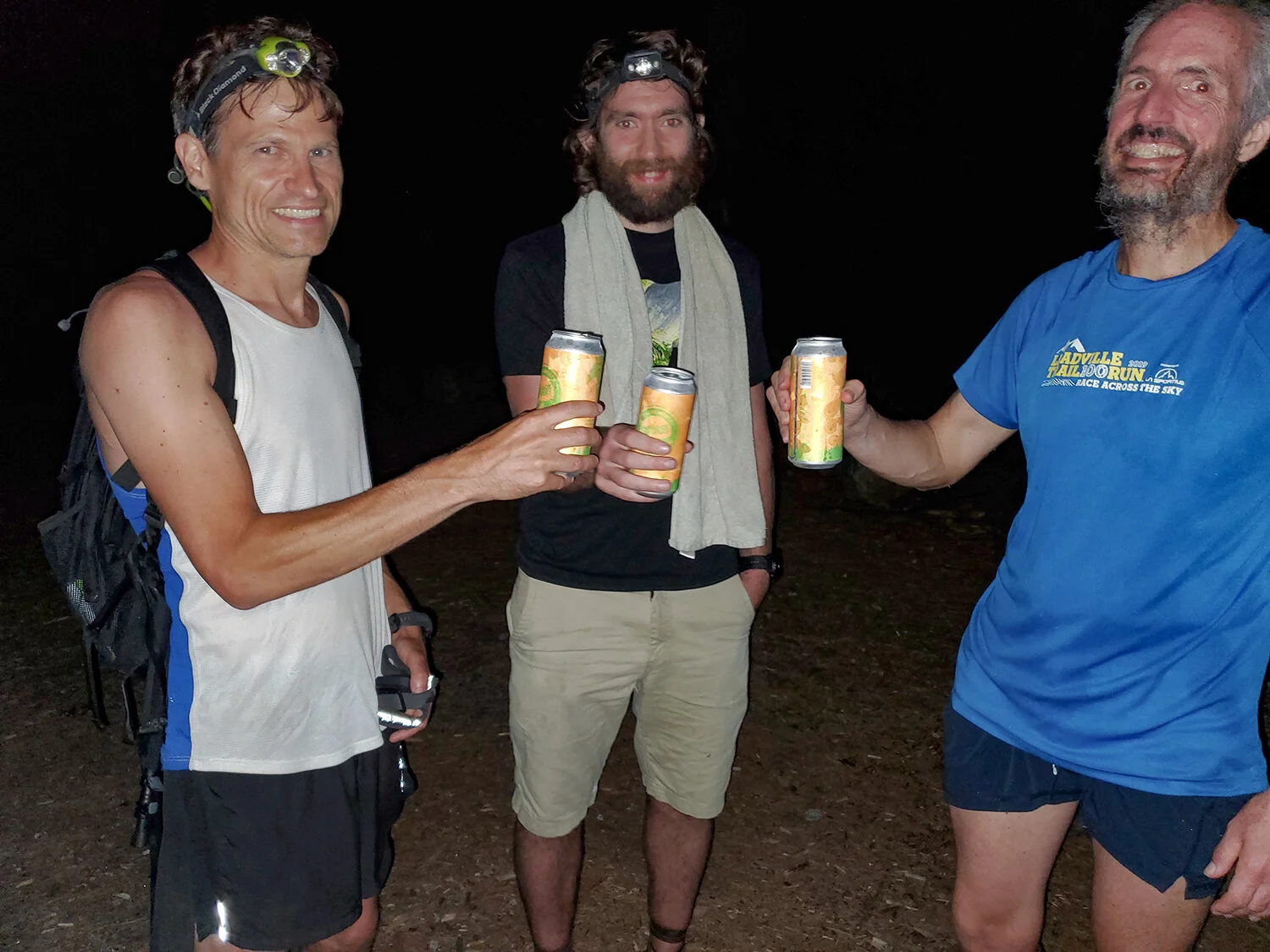 The trail to Cat seemed to be never ending. At the top we had a decision to make, take the shorter trail or the easier one. After so many miles of challenging terrain, we decided it would be much faster to bomb down an easy gravel road rather than face any more technical singletrack. Running down a smooth and easy hill was a great way to finish the run on a high note. Tim and Naomi were at the finish waiting for us. We stopped our watches after a total of nearly 22 hours, then enjoyed a celebratory beer and sandwich, before hopping in the car and making our way back home. After three years of planning, what a spectacular feeling of closure, knowing that the self-propelled 12ster is in fact possible!