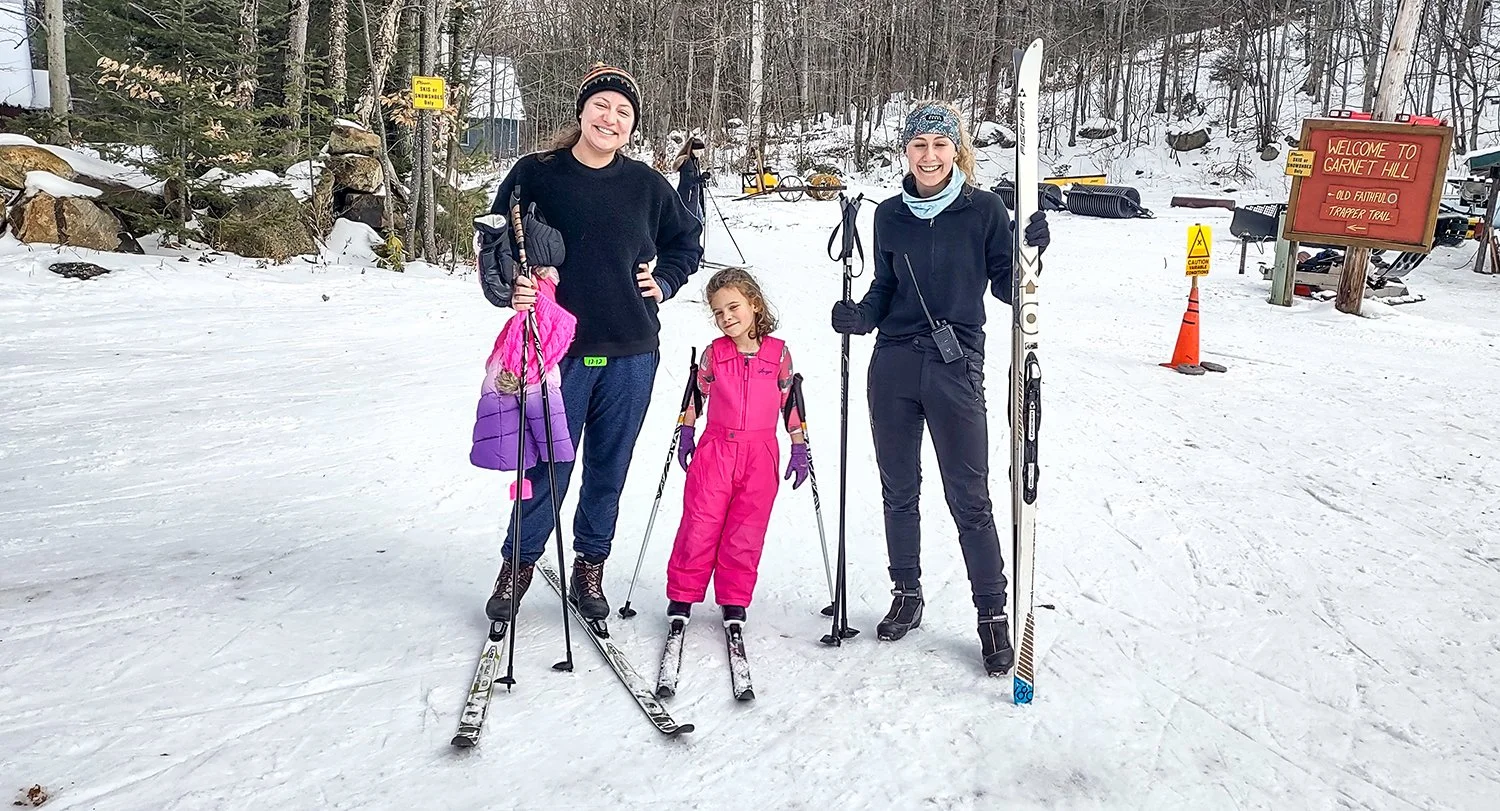 Garnet Hill instructor, Sheridan Millington, with her mother-daughter ski lesson.
