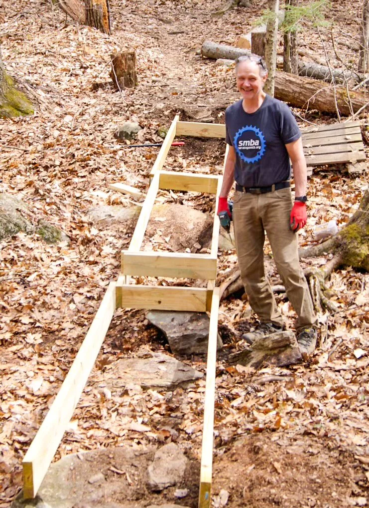 Looking Forward – Art Picard stepped down as president and is back to trail director, where he can focus on his signature rock bridges. Owen Dougherty is now president, Dave Walters move from trail director to vice president, and I’m in communications. We’re working on connecting Daniels Road State Forest to Graphite Range Community Forest, and eventually to Moreau Lake State Park, as part of the Palmertown Range initiative. Our fall/spring trail days have seen north of 50 volunteers since 2021 and newcomers are welcome. For winter fat biking, Daniels has been tracked within three to four days after a snowfall and more new winter riders are joining. See you out on the trails!