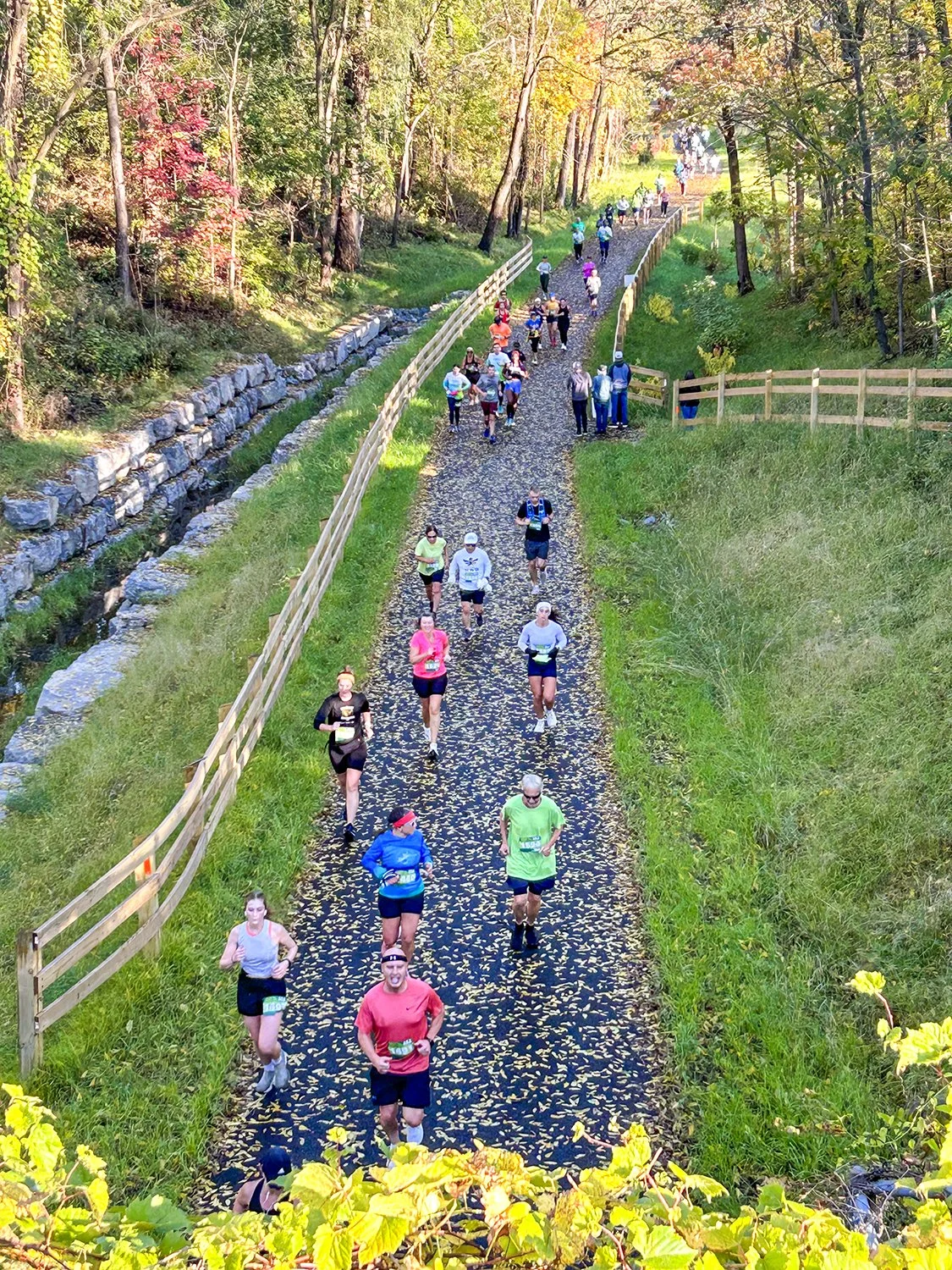 2023 MOHAWK HUDSON RIVER HALF MARATHONERS ON THE TRAIL IN COHOES. DARRYL CARON