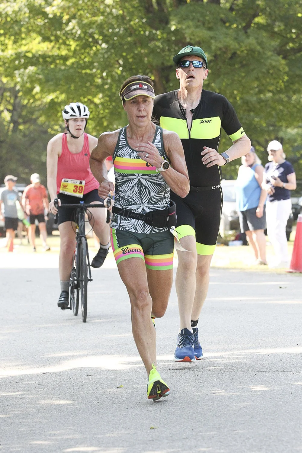 Finishing and transitioning at the 2025 Vermont Sun Triathlon. Pat Hendrick Photography